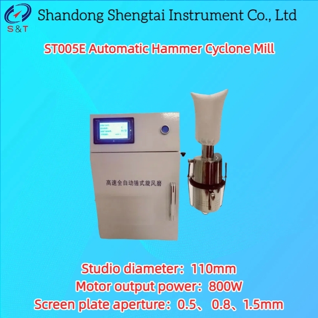 ST005E Automatic hammer cyclone mill is a crushing equipment with beautiful appearance, compact structure, simple operation, smooth operation, and durability. High speed constant temperature automatic hammer type cyclone mill is mainly suitable for crushing small and medium-sized particles (water content meets national standards) such as wheat and rice in the grain industry. The samples crushed by this machine (passing through different aperture sieve plates) are suitable for measuring the quantity and quality of gluten, preparing samples with precision requirements such as drop value, near-infrared composition, and grain viscosity, as well as measuring and analyzing various indicators.