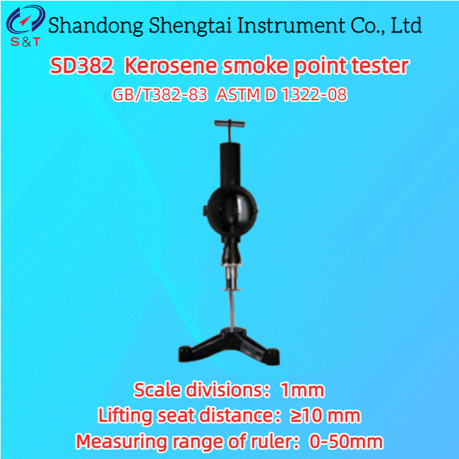 Voor de bepaling van het rookpunt van kerosine en straalbrandstof voor lampen, dat wil zeggen de maximale hoogte van een rookvrije vlam onder gespecificeerde omstandigheden wanneer een monster wordt verbrand in een standaardlamp, uitgedrukt in millimeters. Kerosine en straalbrandstof lont voldoen aan GB/T382-83. Bepaling van het rookpunt van kerosine en straalbrandstof GT; ASTM D1322-08 Standaard testmethode voor rookpunt van kerosine en vliegtuigbrandstof, voor de bepaling van het rookpunt van kerosine en straalbrandstof voor lampen.