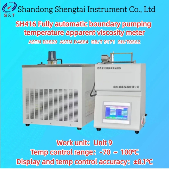 De SH416 volautomatische grenspomptemperatuur schijnbare viscositeitsmeter is ontworpen en vervaardigd in overeenstemming met de eisen van de Chinese nationale norm GB/T 9171-1988 Bepalingsmethode voor de grenspomptemperatuur van motorolie, evenals SH/T0562, en voldoet ook aan de petrochemische industrienorm ASTM D3829 D4684; Een instrument dat wordt gebruikt om de grenspomptemperatuur, (lage temperatuur) vloeigrens en schijnbare viscositeit van motorvoertuigmotorolie te bepalen, met een breed temperatuurregelbereik van -5 ℃ tot -40 ℃. Het gehele experimentele proces wordt automatisch bestuurd door computers.